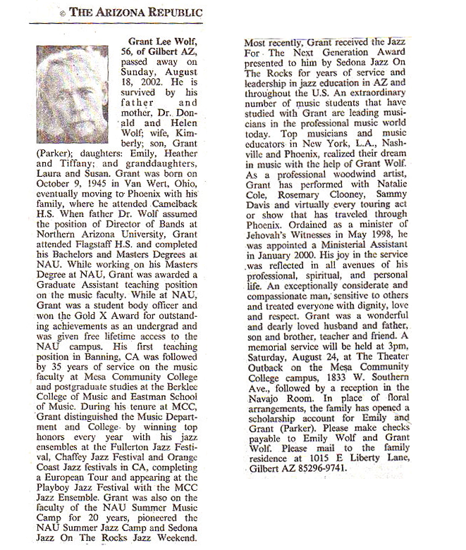 Below: Patricia Meyers kindly wrote the following article about Grant after his death. Thank you Pat!
