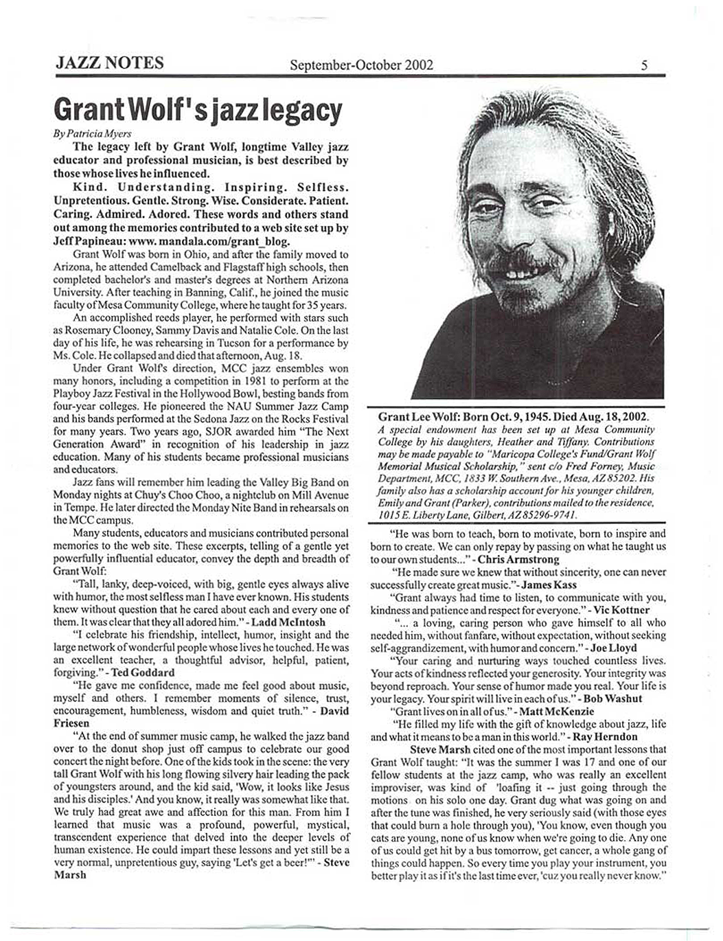 Unfortunately Grant Wolf was taken from us way too soon, at age 56. And so this great teacher's legacy continues on... |